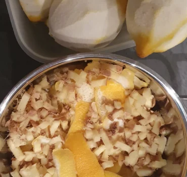- Juice the peeled lemons and mix the juice with honey. Set aside.