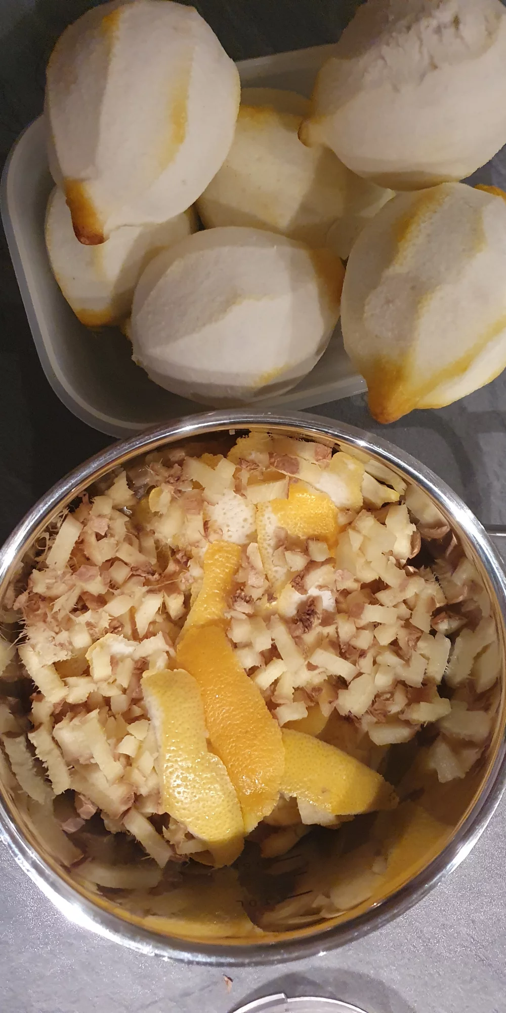 - Thinly peel the lemons, removing only the yellow outer layer, which contains essential oils.