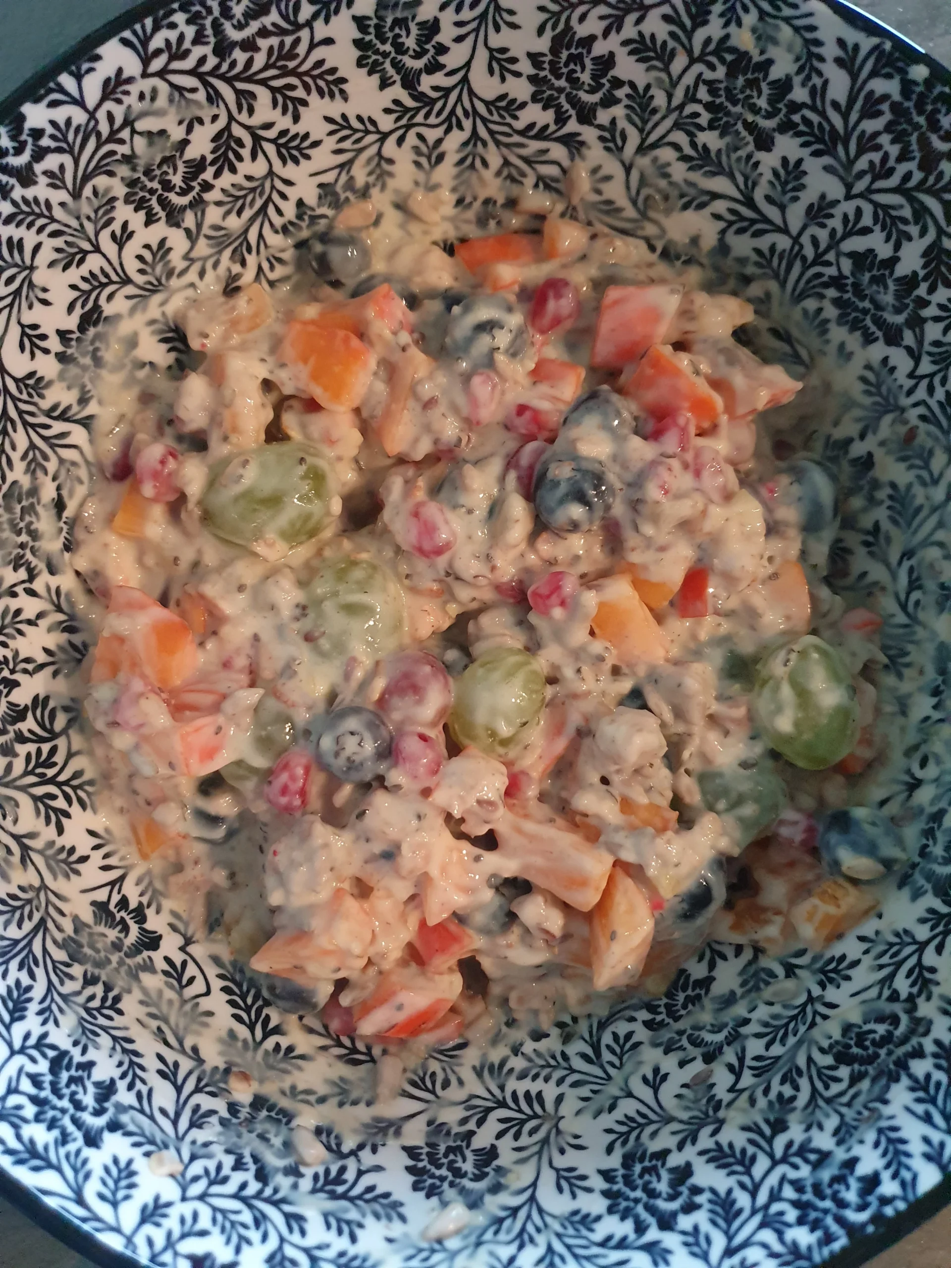 Gieße den Sojajoghurt über die Mischung und rühre gut um.